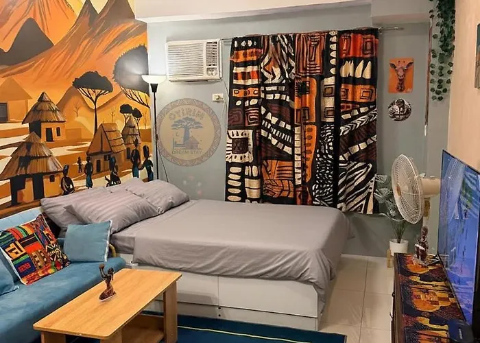 Cozy African Themed Unit In Paranaque Manila apartment is located in the Paranaque district of Manila, nearly a 5-minute walk from Office Of The City Mayor. Also, the presence of a private pool guarantees a relaxing stay.